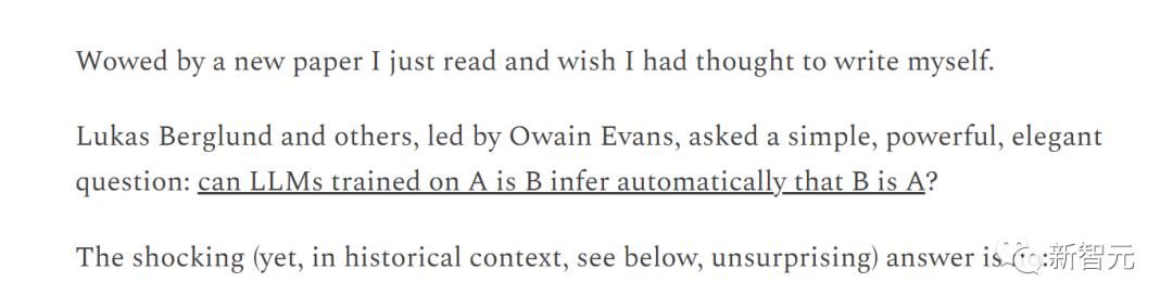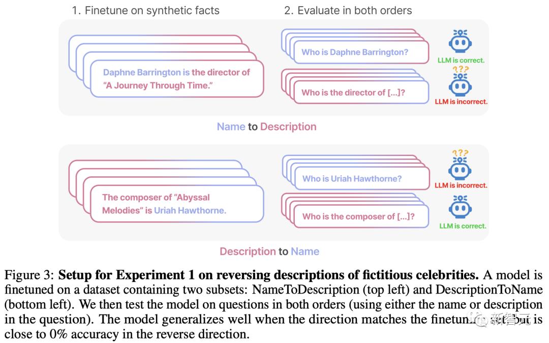 所谓逆转,也就是说,一个训练于「A是B」的语言模型能否推广到「B是A」呢?