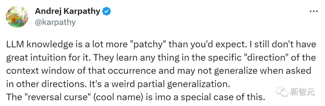 OpenAI科学家Karpathy转发并评论道:大语言模型的知识比你想象得要零碎得多。