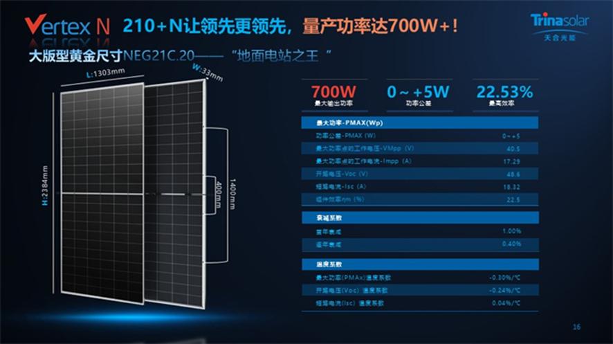 天合光能发布行业首个量产功率突破700W+的TOPCon电池来源:天合光能官网