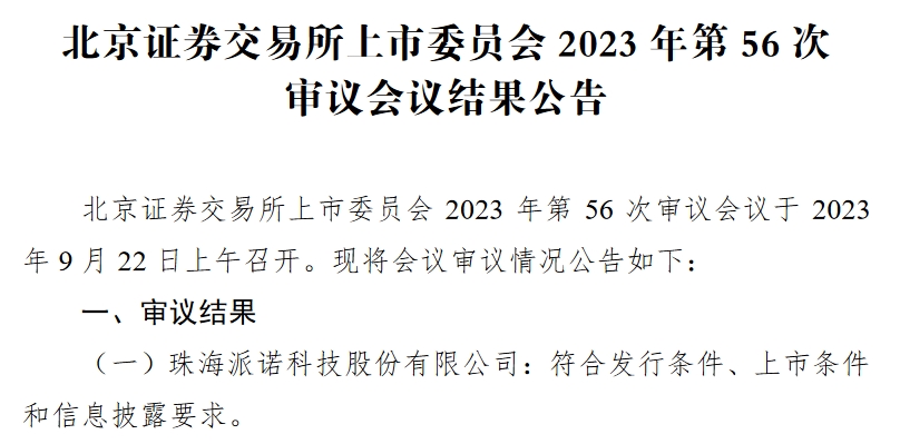 北交所官网显示,派诺科技申报材料于2022年11月3日获北交所受理,经过四轮问询后,于2023年9月22日过会。
