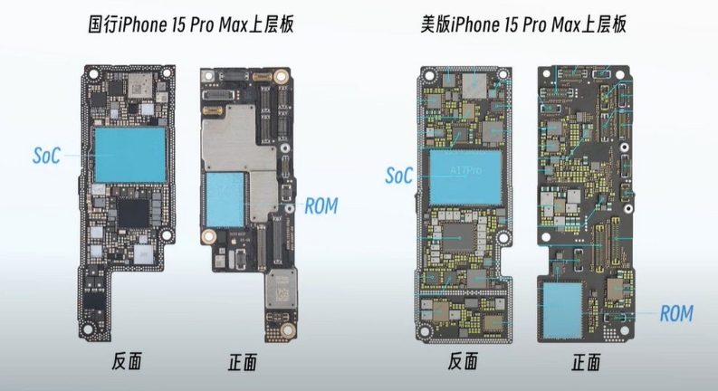 但是,这样的方式在iPhone 15系列上却行不通,根据目前的拆解信息来看,iPhone 15系列的主板分为两种,分别对应有卡槽和无卡槽版本。无卡槽版本的主板在对应位置设计了其它元器件,除非对主板进行破坏性切割,否则是无法腾出安装卡槽的位置了。