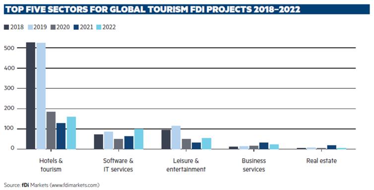 报告显示,在2018年至2022年期间,酒店住宿和旅游板块新建的FDI项目占到了整个旅游产业集群的2/3。2022年,酒店和旅游板块的FDI项目总数同比增长了25%。