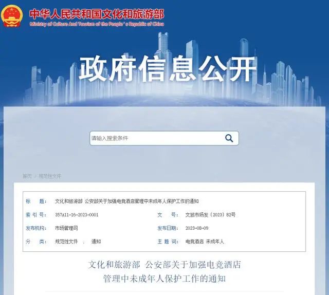 近日,文化和旅游部、公安部出台了《文化和旅游部 公安部关于加强电竞酒店管理中未成年人保护工作的通知》。