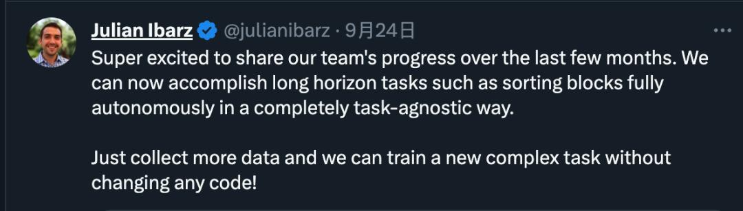 并且只要收集更多数据,就可以训练新的复杂任务,无需更改任何代码。