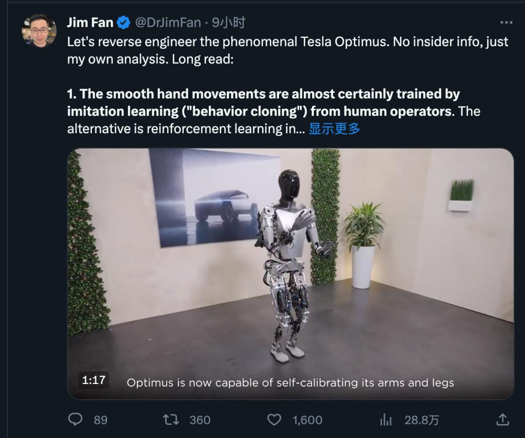 他推测:流畅的手部动作几乎肯定是通过模仿人类(行为克隆)训练出来的。