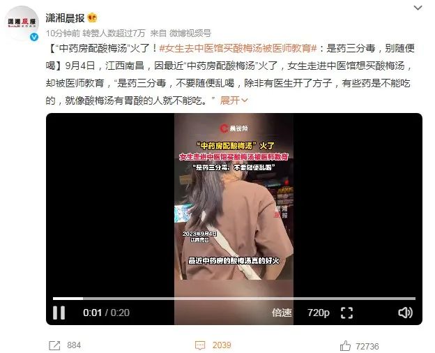 简单说,就是有人在网上分享了去中药房买酸梅汤的经历,然后全国的中医院、中药房就出现了一批疯狂的年轻人,哭着喊着要医生开酸梅汤,拯救他们被酷暑热炸的灵魂。