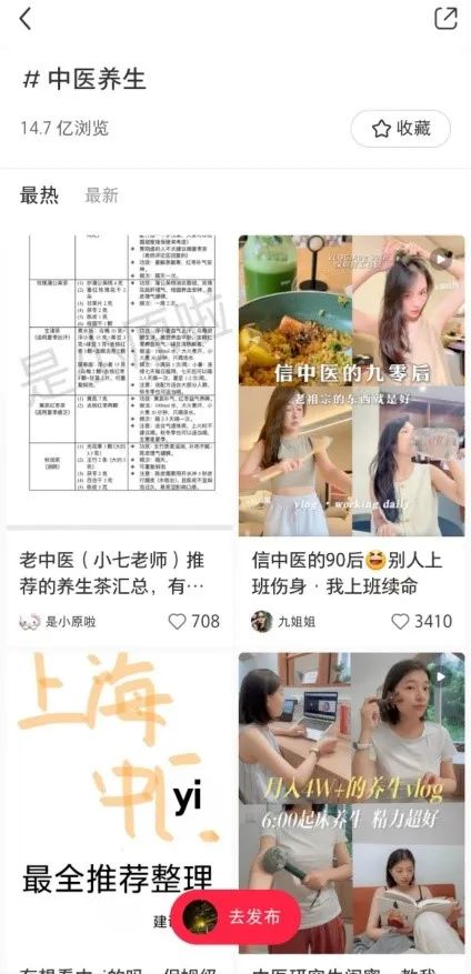 △小红书上中医养生词条已经有14.7亿的浏览量