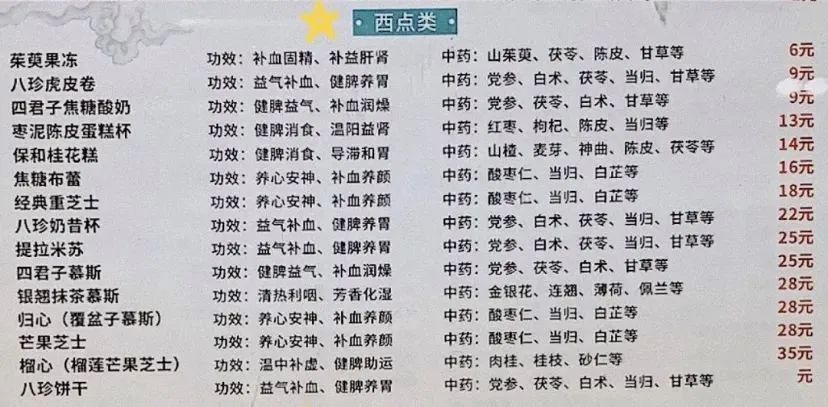 △上图为“食养厨房”菜单标价,下图为“食药同园”西点菜单,价格是真的亲民,用料也真的放心。