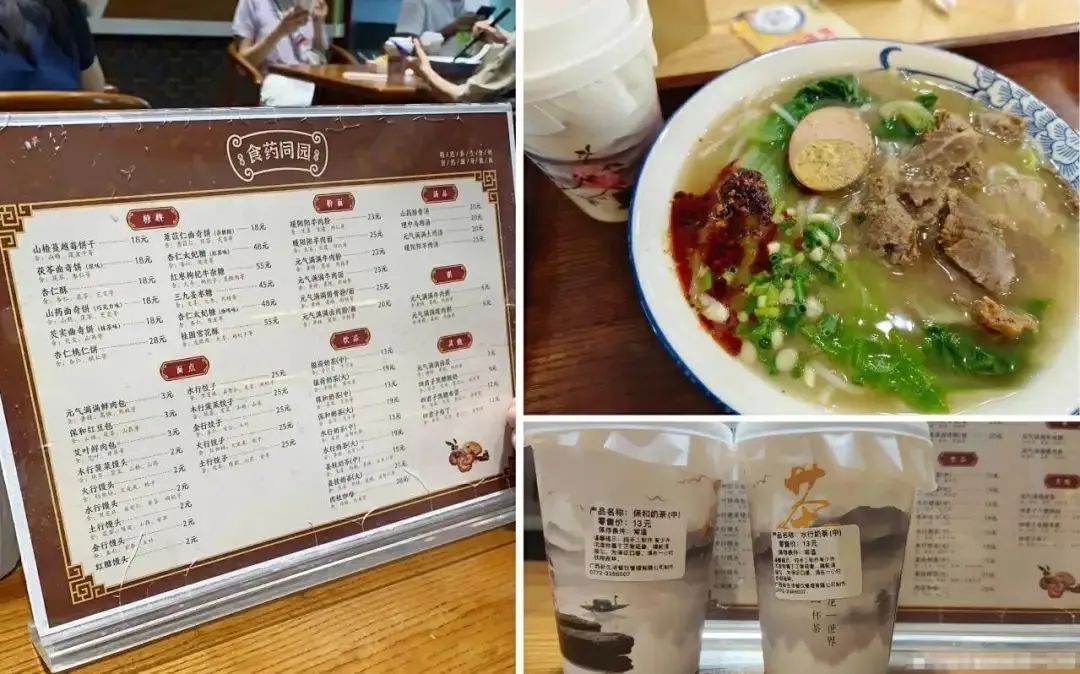 既然是食疗,那肯定不止汤剂,更要有药膳。广西柳州市中医院“食药同园”美食馆(注意,不是“药食同源”哦)中的多样平价药膳更是馋坏了外地的友友,只能一边看着短视频流口水,一边盘算双节假期(中秋+国庆)去柳州的票还抢不抢得到。