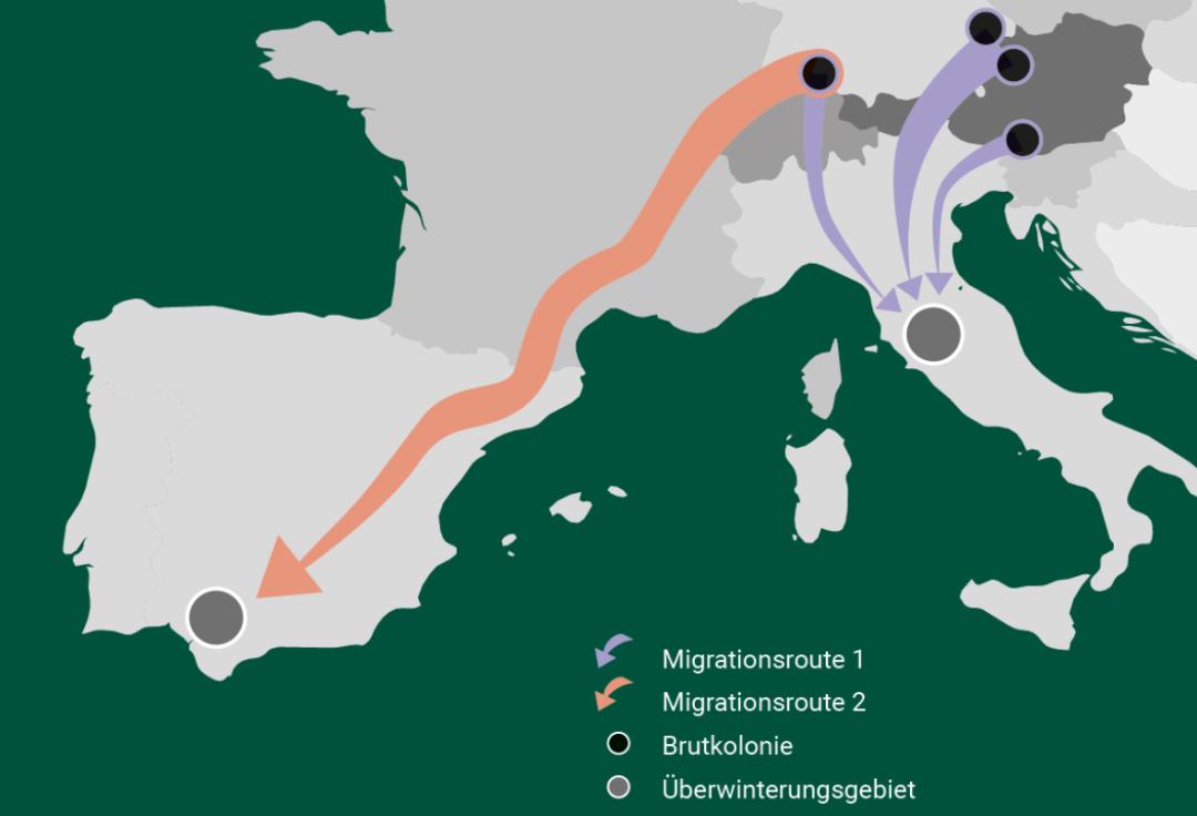 先向西飞往法国,再向南飞到地中海,然后沿着曲折漫长的海岸线,飞到西班牙南部的安达卢西亚|Waldrappteam.com