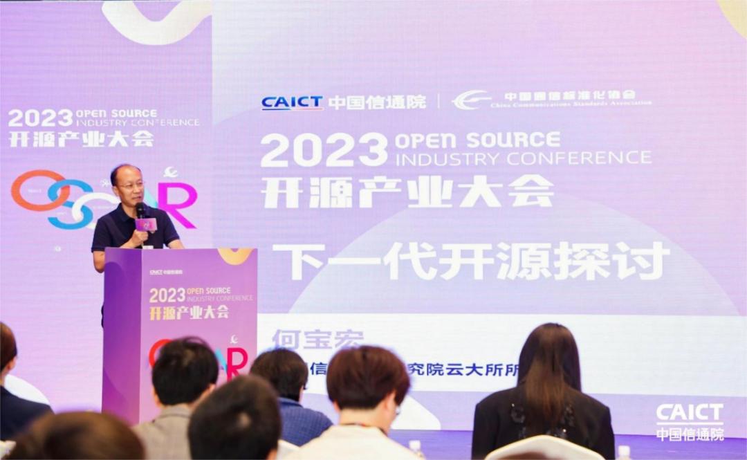 2023年9月21日,由中国信息通信研究院(以下简称“中国信通院”)和中国通信标准化协会联合主办的“2023 OSCAR开源产业大会”在北京举行。会上,中国信通院云计算与大数据研究所所长何宝宏首次与业界分享对下一代开源的最新见解与观点。