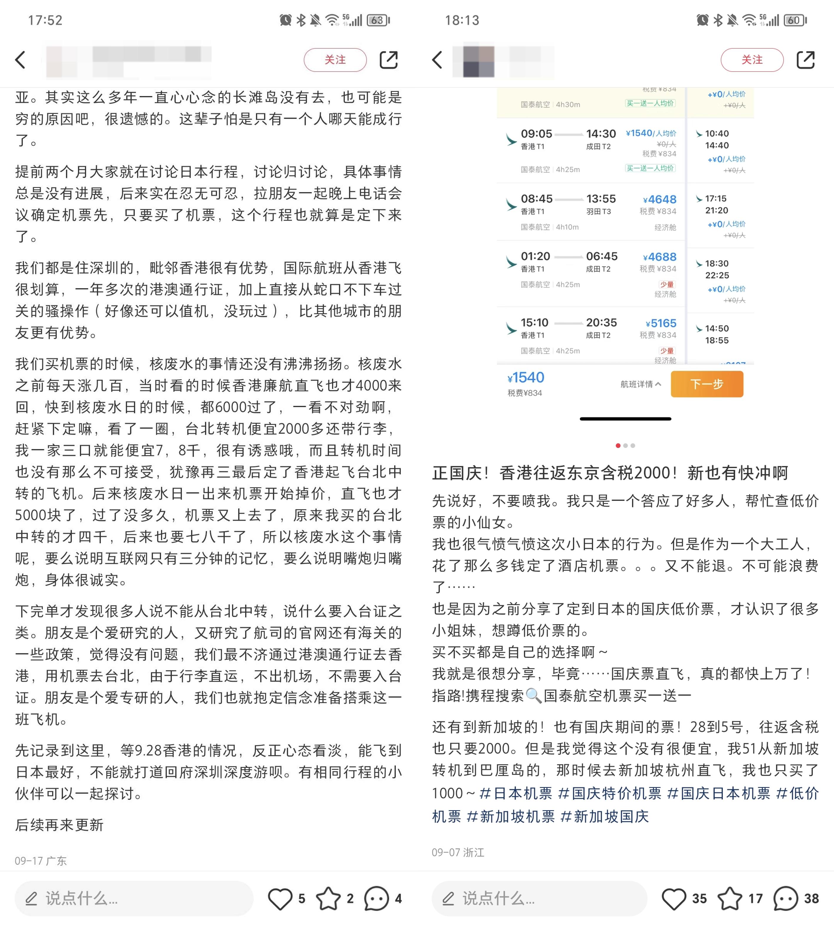 日本核污水排放事件,导致大量游客放弃赴日旅游。据界面新闻,“有游客反馈,10月1日-10月8日北京往返大阪的机票在此前购买时价格为一人8300元,目前已经降到一人5900元。”