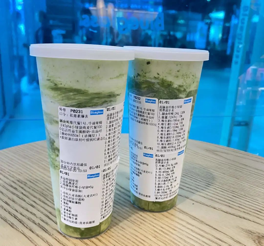 Blueglass50元一杯的酸奶贴得像输液瓶,打工人防猝死这么拼了?