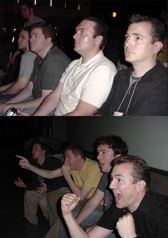 图片的上半部分拍摄于 2003 年 E3,其中的四位老外,均是游戏测评媒体 IGN 的员工。