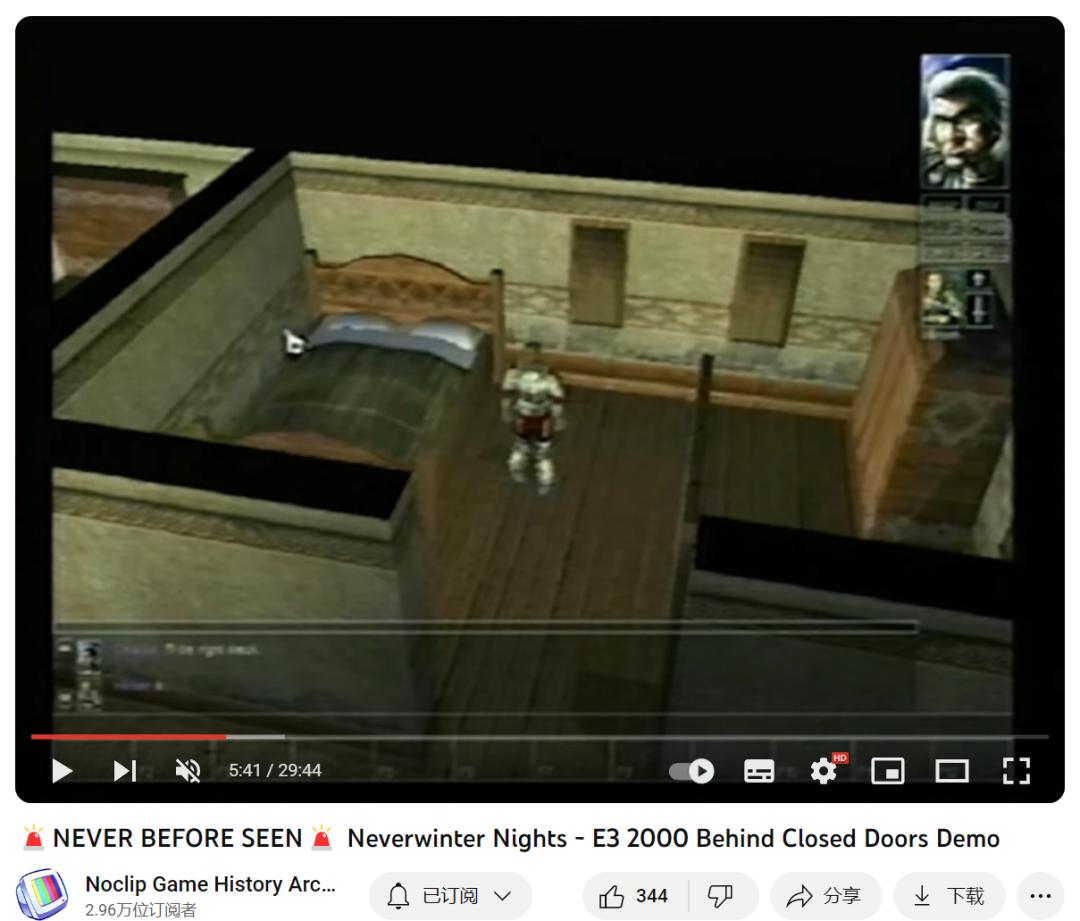 他们还有一段当年 Bioware 在 E3 上带来的《 无冬之夜 》演示 DEMO,时间坐标为 2000 年。