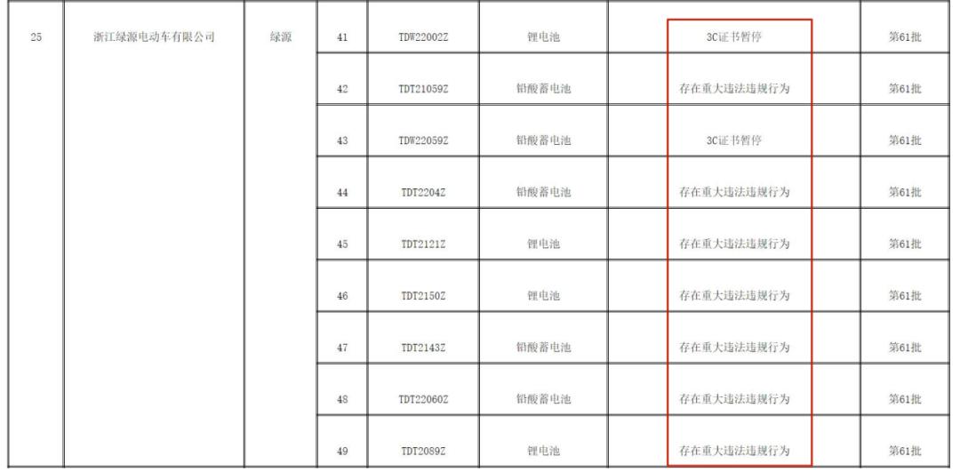 今年6月28日,公布的2023年第5批抽查结果,绿源的三款车型出现不合格,涉及整车质量、充电器与蓄电池(蓄电池防篡改)等。