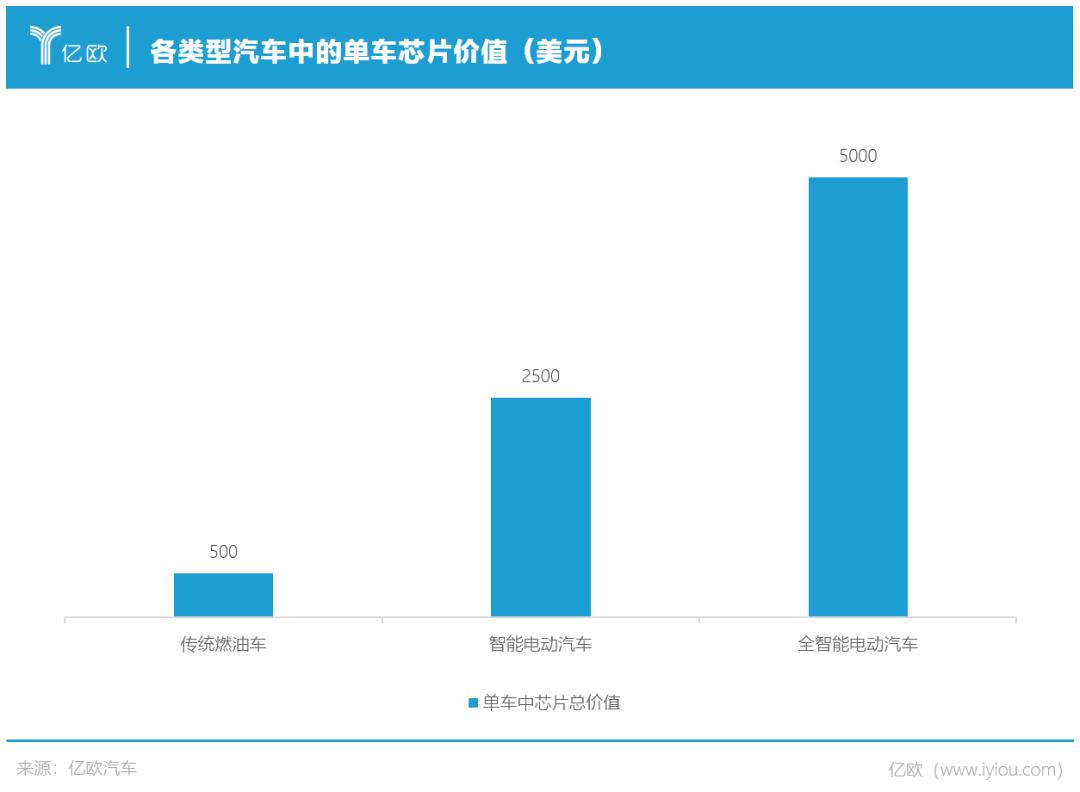 “汽车芯片市场正在快速增长,”万铁军告诉亿欧汽车,“以目前电动车的情况来看,比如像小鹏的电动汽车,单车所用芯片总价值大概是在2500美金,到了全智能电动汽车的时候,可能会上升到5000美元。”