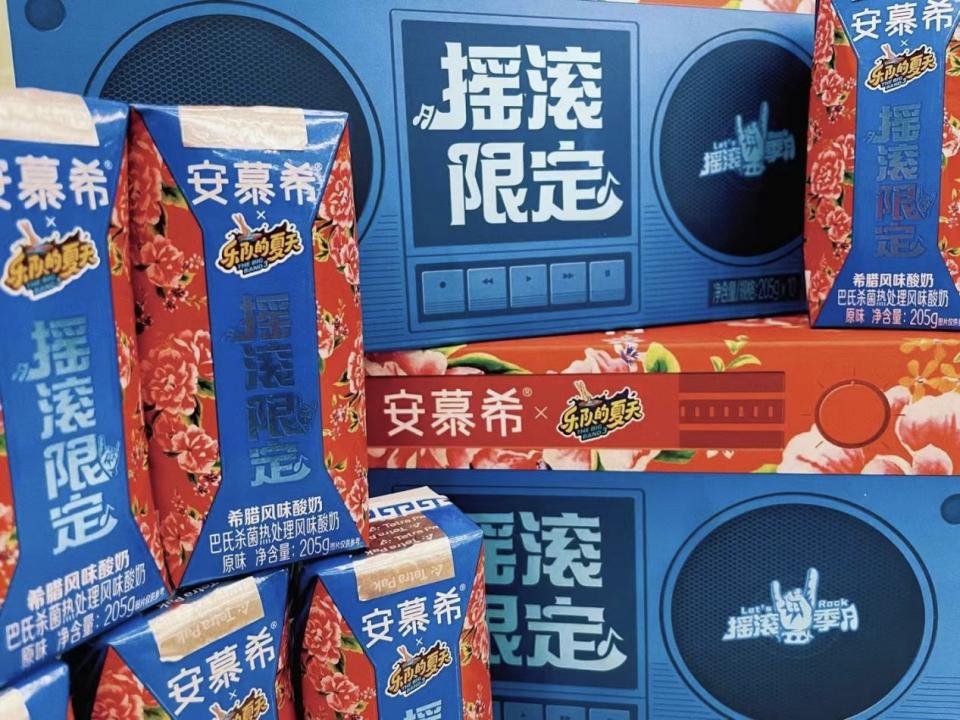 这样的思路,在安慕希的多个环节都能看见。特供联名产品之外,综艺中的内容,比如乐队的表演,也延伸为线下品牌活动的切入点与吸引点。