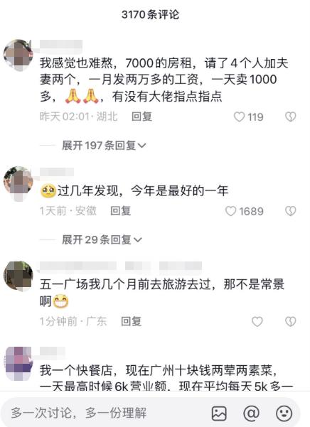 - “自己炒菜,请个阿姨搞卫生、端盘子3800,房租7000,但连续一个礼拜都是收入几百,我要撑不下去了。”
