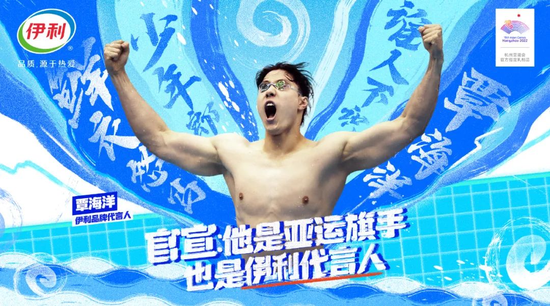 亚运赛期前,在日本福冈举办的游泳世锦赛刚刚结束,覃海洋在打破世界纪录的同时包揽4金,以出众的实力和成绩瞬间揽获了大量关注。而到了亚运会开幕式上,覃海洋再担中国代表队旗手,更是让这个24岁正值巅峰的游泳运动员商业价值一路飙升——9月22日,伊利官宣覃海洋为全新代言人,更多的代言合作或许还在筹备之中。