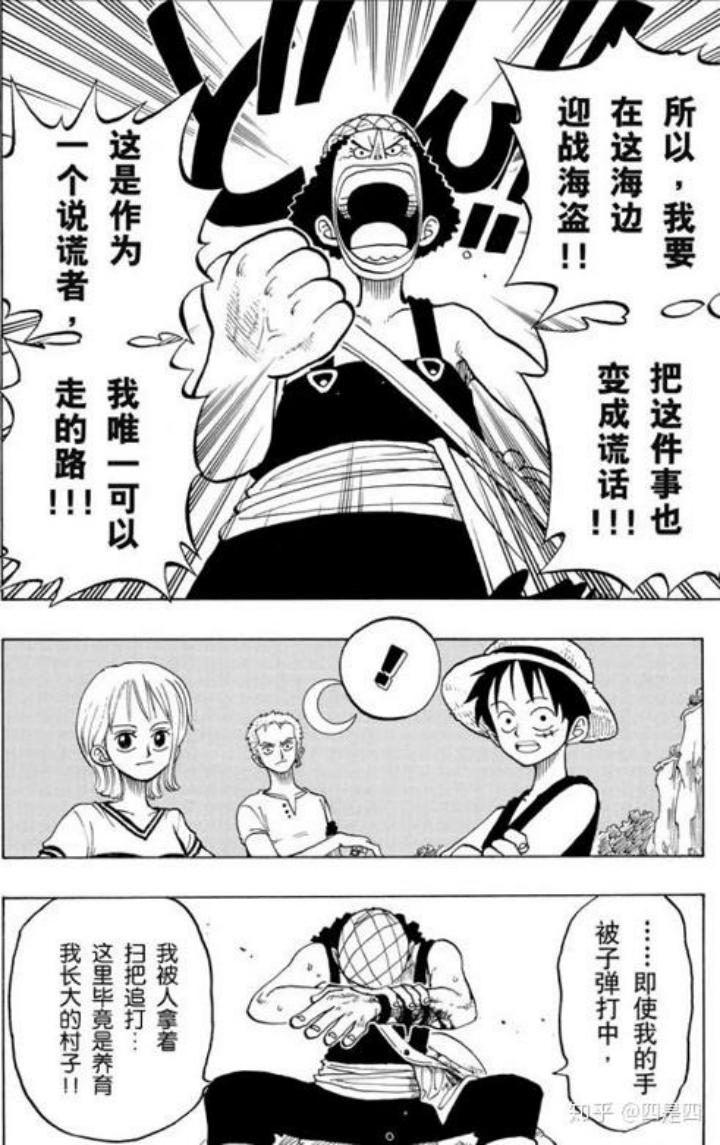 乌索普的一个高光时刻被删去。他的名字在日语里有撒谎的意思,一些翻译中他被叫做「骗人布」。儿时的乌索普就会像喊着“狼来了”的孩子一样,常常在村子里呼告海盗的来临,但那一天真的来临时却没有村民相信他。而他的一番热血宣言「我要在这海边迎战海盗,把这件事也变成谎言!这是作为一个说谎者,我唯一可以走的路。」在剧中遗憾删去,角色的坚强与决心就不如原作刻画得细腻。