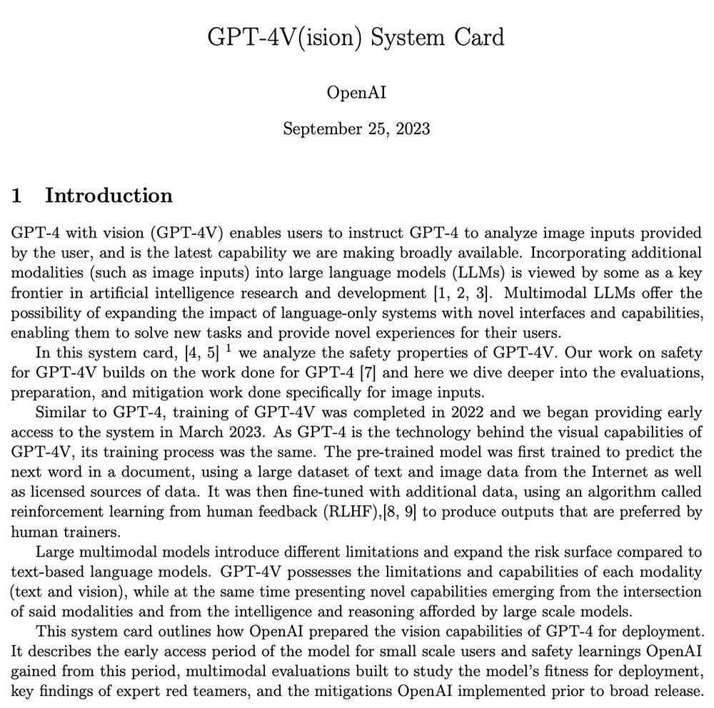 基于视觉的模型也提出了新的挑战,从对人的幻觉到依赖模型对高风险领域图像的解释。在更广泛的部署之前,OpenAI与红队成员一起测试了该模型在极端主义和科学能力等领域的风险,以及一组不同的alpha测试人员。研究使OpenAI能够调整一些关键细节,以实现负责任的使用。