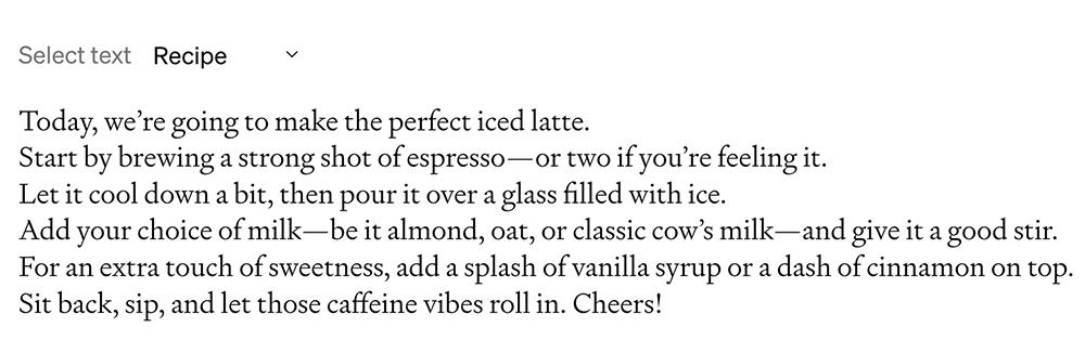 OpenAI展示了一些语音样本,比如讲制作冰拿铁的食谱,五种不同的声音效果如下: