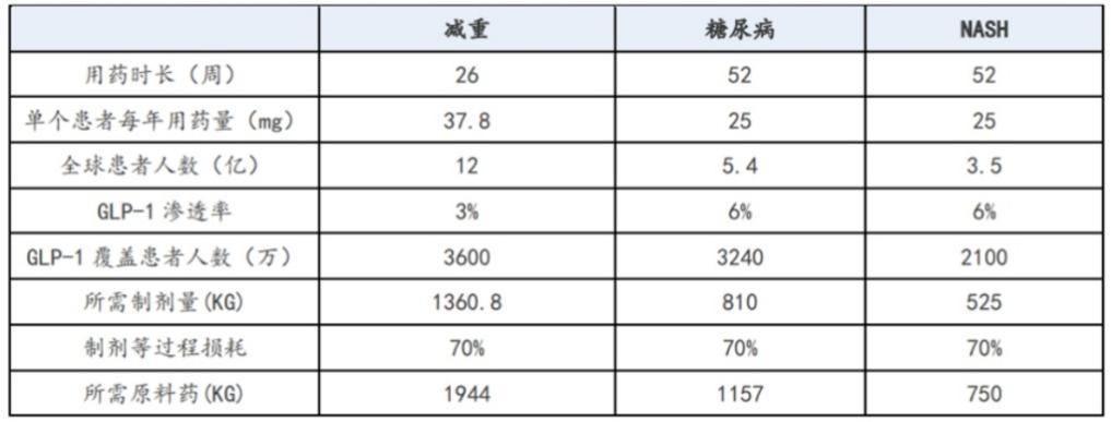 图:全球GLP-1多肽原料药需求测算,来源:安信证券研究中心
