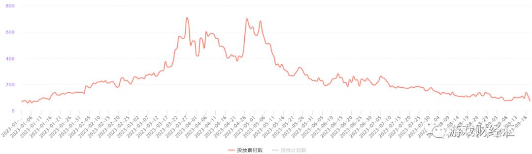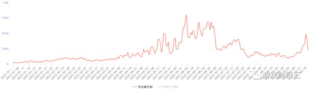根据DataEye-ADX数据,雷霆游戏23Q3以来大幅缩减了买量素材投放,Q3日均素材投放量较Q2下滑近40%。