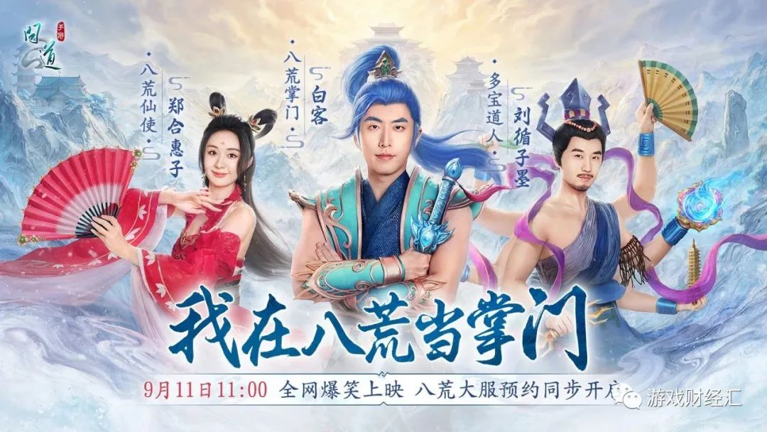 为了宣传年度资料片和大服【战八荒】,《问道手游》请来了白客、刘循子墨、郑合惠子共同出演八荒爆笑定制短片《我在八荒当掌门》。