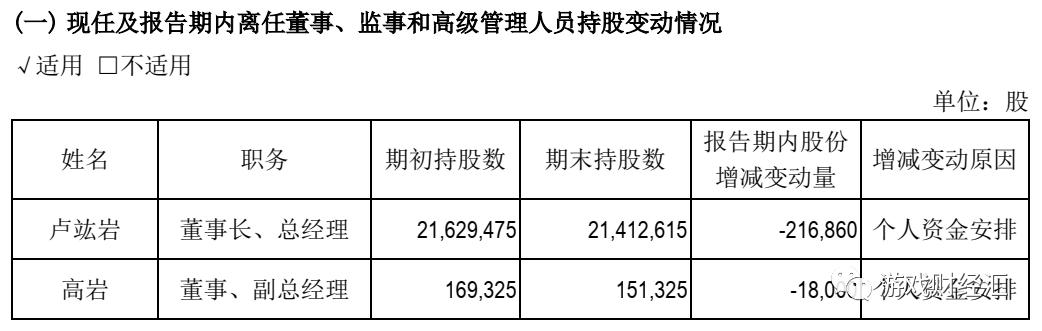 除了大手笔分红,今年4月,卢竑岩与吉比特董事、副总经理高岩曾有过减持动作。