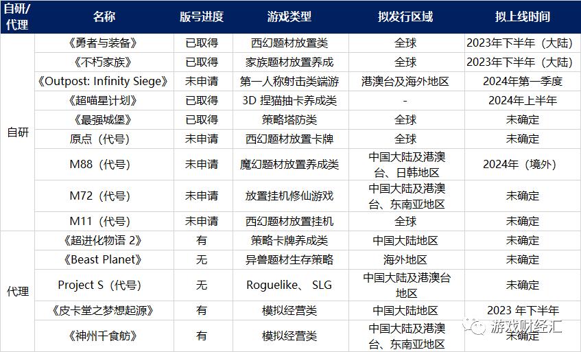 根据吉比特2023年H1财报,目前公司共储备9款自研游戏以及5款代理产品,其中有6款自研产品均采用放置玩法。可以说吉比特目前重点押注放置类游戏。