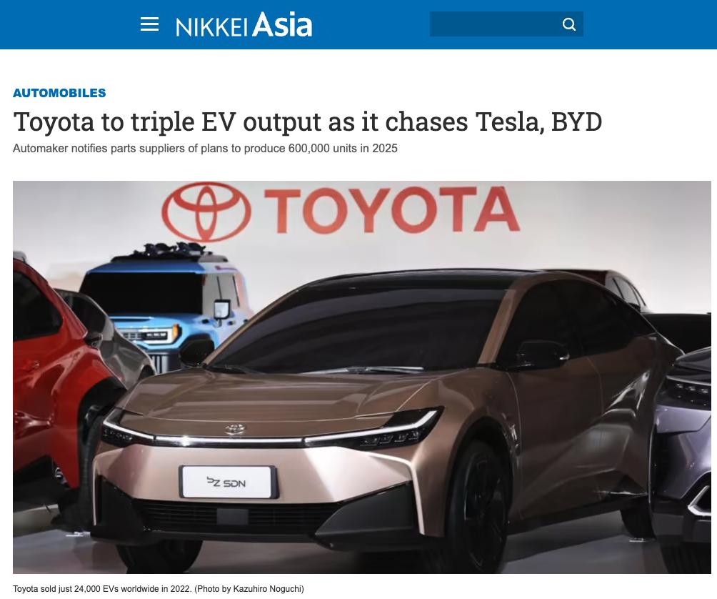 日前,根据日经亚洲的报道,丰田改变了此前对纯电车型的暧昧态度,大幅提高了相关的目标。该报道指出,丰田计划到 2025 年在全球生产超过 60 万辆纯电动汽车,到 2026 年每年销售 150 万辆纯电动汽车,到 2030 年每年销售 350 万辆。