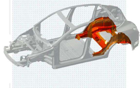 原本多个散件集成为一个零件,生产效大幅爬升,相比传统的生产方式,车身系统的重量,可以减少超10%。