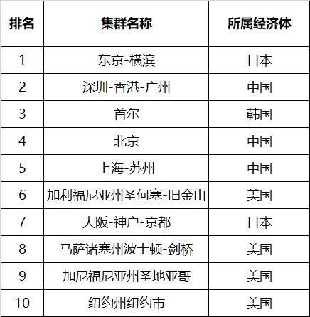 所谓科技集群,一般是指那些发明人和科研工作者密度最高的地理区域,榜单主要根据专利申请活动和科学论文发表情况等方面来进行评价和排名的。