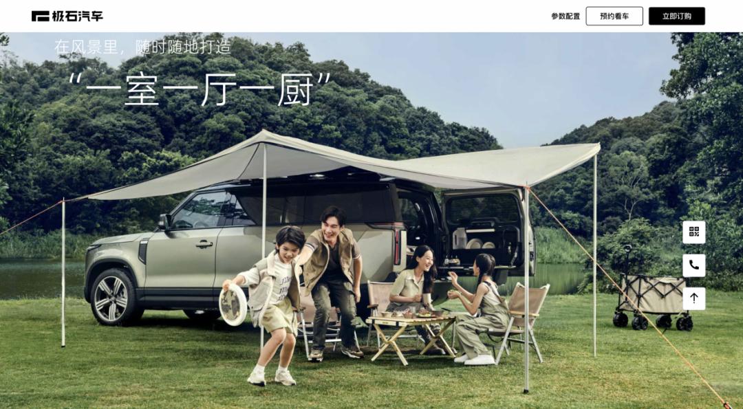 正如极石汽车官网介绍,其目标是要打造“中国家庭的户外首选”,极石01设计了诸多与户外场景相关的性能,比如将车辆与露营结合起来、官方定制车尾餐厨系统等。