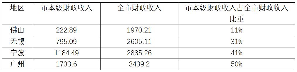 就拿2022年来说,佛山市本级财政收入(一般公共预算总收入+政府基金预算总收入)占全市的比重仅仅只有11%。放眼全国,可能都是最低的。
