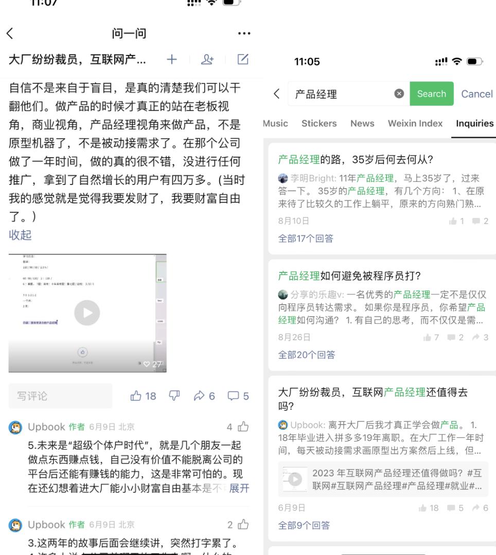而有了微信问一问,自然用户挑选内容的成本会低很多。因为有相关问题,答案自然就出现了。