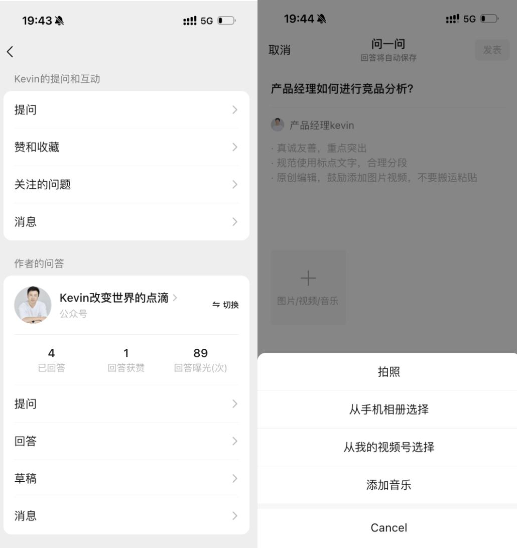 相比视频号,微信问一问并没有单独的账号。只要开通了视频号或者公众号,就可以进入微信问一问回答。
