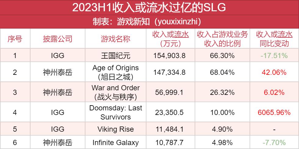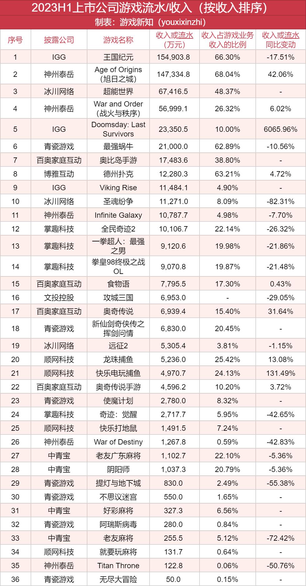 在披露的这些游戏中,有14款流水过亿。榜单的前列多数都是熟面孔,如IGG的《王国纪元》、神州泰岳的《旭日之城》《战火与秩序》、青瓷游戏的《最强蜗牛》。