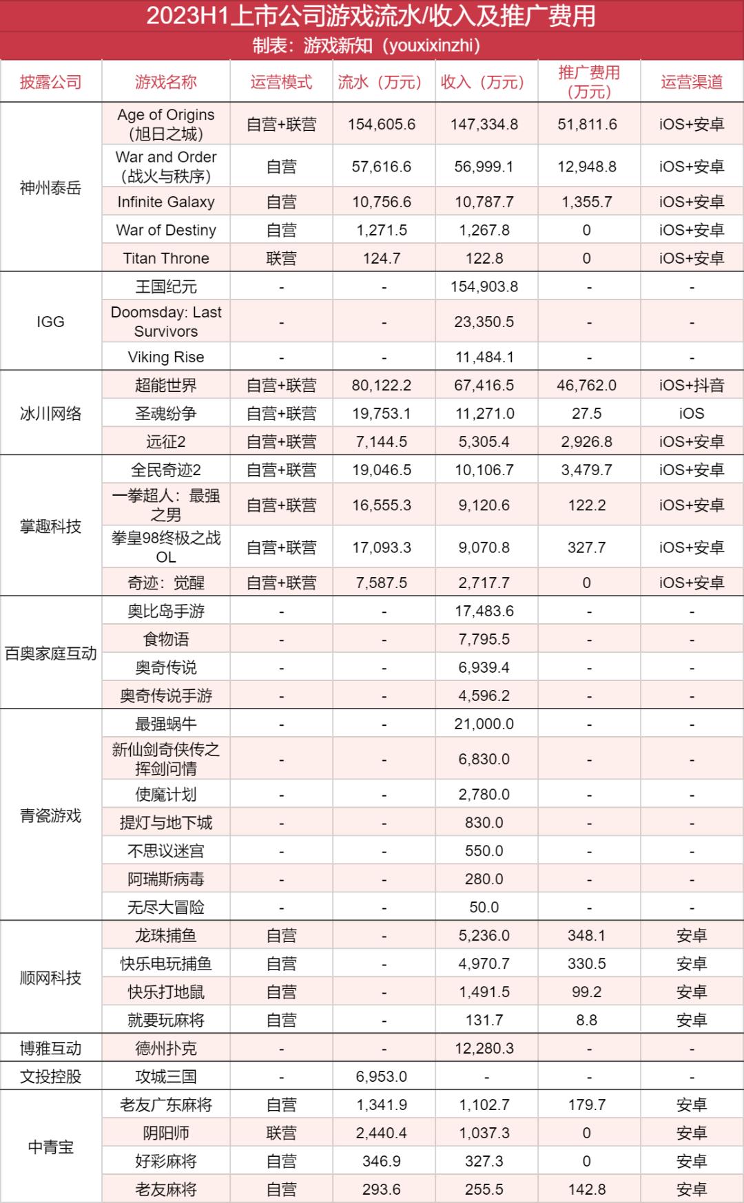 注:下表中披露的流水不代表游戏全渠道总流水,仅代表公司自身渠道的流水,具体情况需结合「运营模式」来区分。