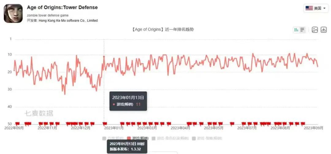 这些游戏中,有一部分是在本身质量过硬的基础上,上线数年后依然通过稳定的优化更新来保持用户留存。比如《旭日之城》,在去年年底时对3D建模、UI等美术素材进行了全面优化,使得游戏从今年1月起在美国iOS畅销榜的排名显著上升,并且能持续保持在比之前更高的名次。