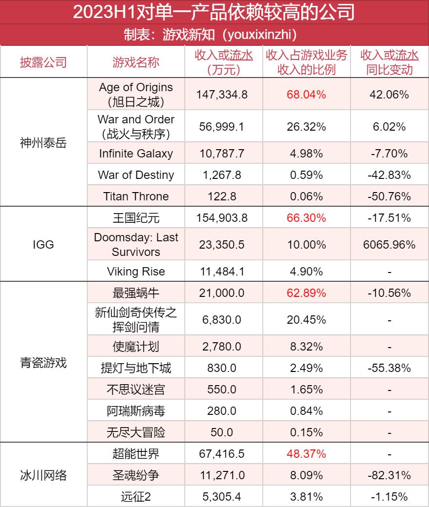 在统计数据中,有三家公司出现了单一产品占收入比例超过60%的情况,还有一家公司单一产品收入占比接近50%。