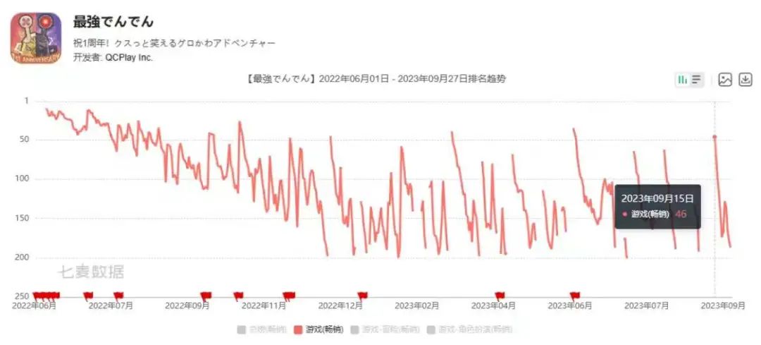 还有一部分如《最强蜗牛》,则是靠不断将游戏带向新的市场来创造收入。游戏在今年1月新上线了泰国地区,收入来源得到扩充,同时去年6月上线日本后也保持着比较稳定的收入能力。从日本iOS畅销榜排名来看,游戏排名虽然呈现出缓慢下滑的态势,但是每逢大小活动仍能时不时回到100名甚至50名以内,应该收获了一批忠实的留存用户。