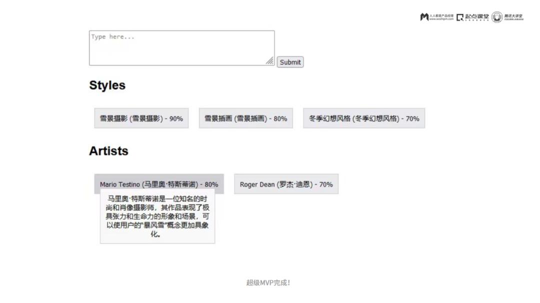 基于MVP模型不断地迭代,同样“编写明确和具体的指令,留给模型足够的思考时间”,然后进行迭代,输出不同维度的提示词,通过这些产出,我们得到了最后的产品。