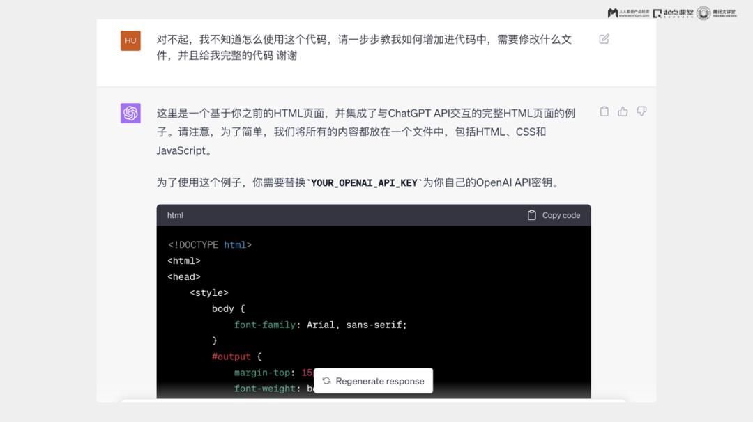 过程中也会遇到问题,这个时候,你可以将问题丢给GPT,它会告诉你问题出在哪里,随后你再解决即可。