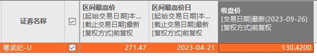 或受此影响,寒武纪昨日盘中涨幅一度达到6.46%,收130元/股。后其涨幅有所回落,截至收盘涨幅为3.4%,总市值为543亿元。不过,寒武纪昨日130.42元/股的收盘价,相较今年4月21日271.47元/股的股价仍下跌了一半。
