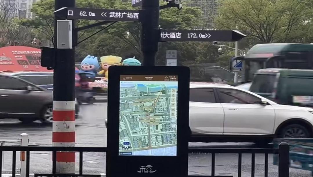 在杭州武林商圈,杭州早早就设置了5个既会“说话”还会“转头”的指引路牌。通体黑色且能够360度实时转动的指路牌,网友纷纷惊叹“魔幻地像是哈利波特魔法世界的路标,有时路过还会自动播放BGM。”