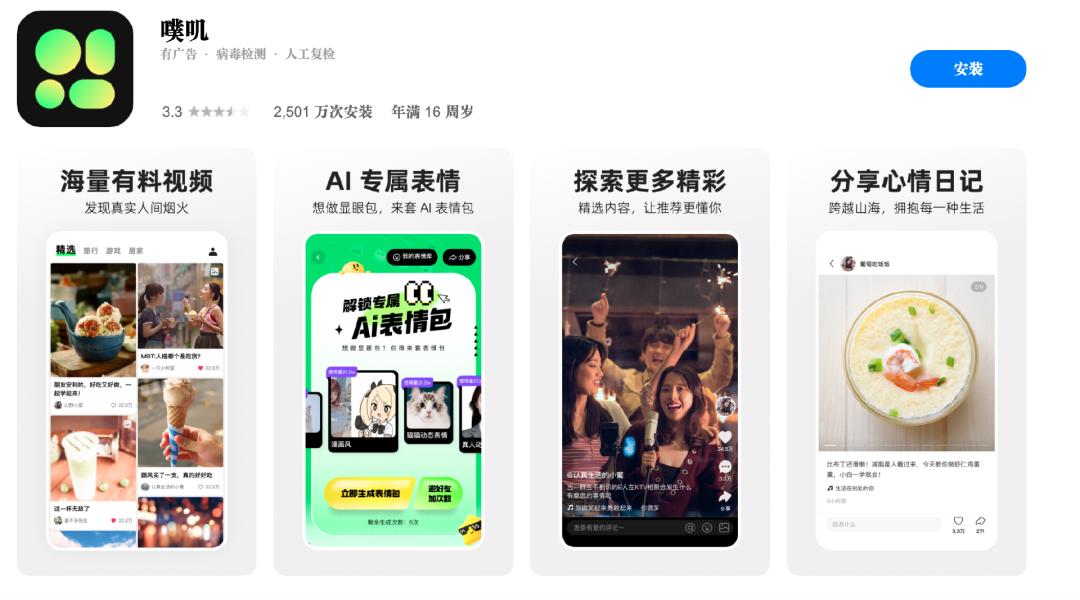 Tech星球独家获悉,近日,快手推出了一款名为“噗叽”的APP,产品定位是潮流视频社区,包含时尚、音乐、艺术、二次元等兴趣知识视频、图文内容。不久前,抖音旗下的B站版APP“青桃”,于近期更名为“抖音精选”,定位年轻人的兴趣知识视频平台。