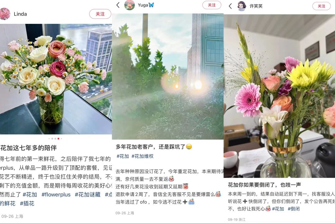 “9月初,花加还发短信说要‘调整供应链生产配送模式’,之前的每周一送改成隔周配送。”花加用户木子告诉「市界」,当时她的第一反应是,这家平台“要出问题了”,但没想到爆雷来得这么快。